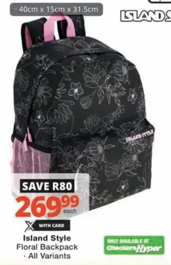 Island Style Floral Backpack offers and online specials, directly from Checkers Hyper