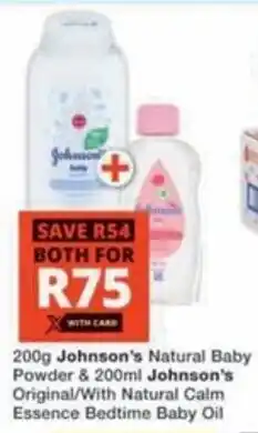Johnson's Natural Baby Powder & Johnson's Original/ With Natural Calm Essence Bedtime Baby Oil offers and online specials, directly from Checkers Hyper