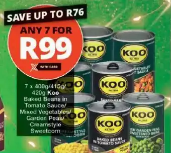 Koo Baked Beans in Tomato Sauce/ Mixed Vegetables/ Garden Peas/ Creamstyle Sweetcorn promotion at Checkers Hyper