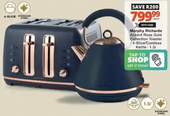 Morphy Richards Accent Rose Gold Collection Toaster 4-Slice/ Cordless Kettle promotion at Checkers Hyper
