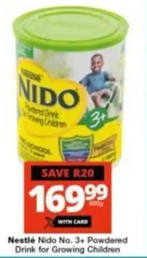 Nestlé Nido No. 3+ Powdered Drink for Growing Children offers and online specials, directly from Checkers Hyper