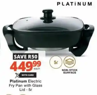 Platinum Electric Fry Pan with Glass Lid offers and online specials, directly from Checkers Hyper