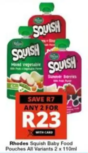 Rhodes Squish Baby Food Pouches All Variants promotion at Checkers Hyper