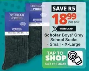 Now on special at Checkers Hyper: Scholar Boys' Grey School Socks ✅ Valid from 28-12 to 8-02.
