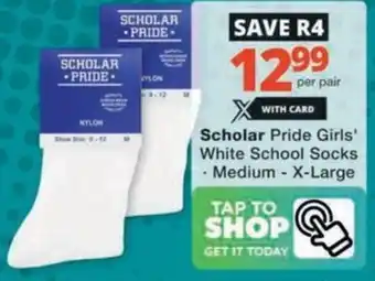 Now on special at Checkers Hyper: Scholar Pride Girls' White School Socks ✅ Valid from 28-12 to 8-02.