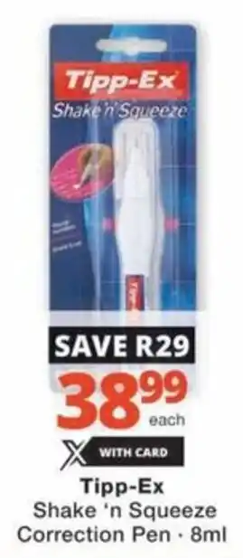 Tipp-Ex Shake 'n Squeeze Correction Pen offers and online specials, directly from Checkers Hyper