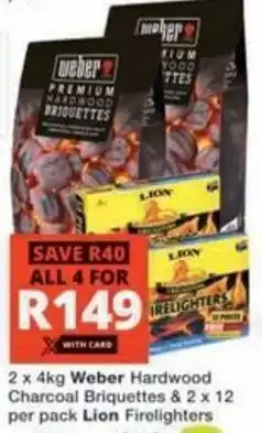 Weber Hardwood Charcoal Briquettes & Lion Firelighters promotion at Checkers Hyper
