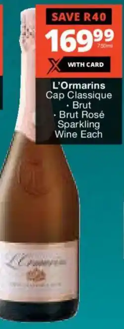 L'Ormarins Cap Classique, Brut, Brut Rosé Sparkling Wine promotion at Checkers Liquor Shop