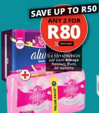 Now on special at Checkers: Always Sanitary Pads All Variants ✅ Valid from 19-01 to 8-02.