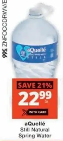 This special is available in various stores, view all products to get the cheapest aQuellé Still Natural Spring Water. If you'd like to find out whether this product has a bigger discount in another store, check the category 'Grocery stores'. You may also find these specials interesting: Aquelle natural still/ sparkling spring water, Aquelle still/ sparkling natural spring water & aQuelle Still or Sparkling Natural Spring Water.