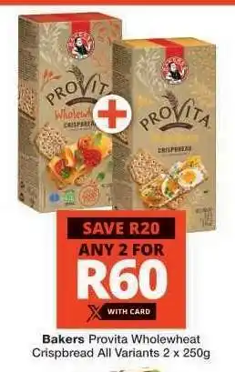 BAKERS PROVITA WHOLEWHEAT CRISPBREAD promotion at Checkers