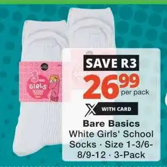 Bare Basics White Girls' School Socks promotion at Checkers