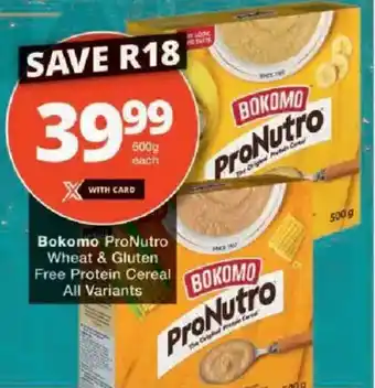 Bokomo ProNutro Wheat & Gluten Free Protein Cereal All Variants offers and online specials, directly from Checkers
