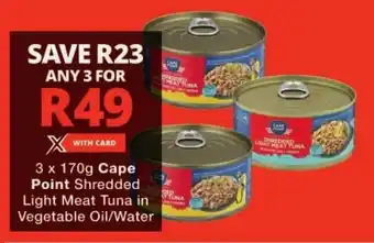Cape Point Shredded Light Meat Tuna in Vegetable Oil/ Water Offer at Checkers