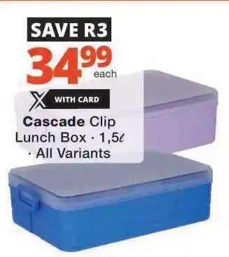 Now on special at Checkers: Cascade Clip Lunch Box ✅ Valid from 29-12 to 8-02.