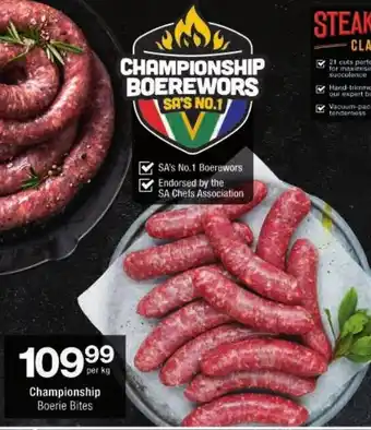 Checkers offers a wide collection of products, besides the Championship Boerie Bites. Keep an eye on the weekly Checkers catalogue to find the best specials and promotions. Besides Championship Boerie Bites, you can also find the following offers: Championship Boerewors, Championship Boerewors & Championship Braai Sauce Asstd..