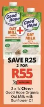 Clover Good Hope Organic Oat Milk with Sunflower Oil offers and online specials, directly from Checkers