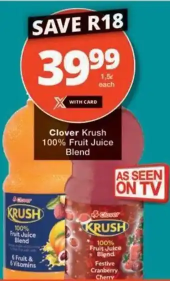 Clover Krush 100% Fruit Juice Blend Offer at Checkers