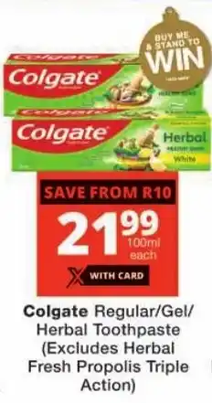 Colgate Regular/ Gel/ Herbal Toothpaste promotion at Checkers