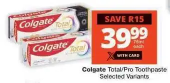 Colgate Total/Pro Toothpaste Offer at Checkers