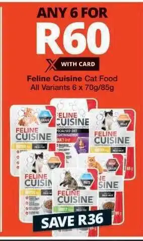Now on special at Checkers: Feline Cuisine Cat Food ✅ Valid from 19-01 to 8-02.