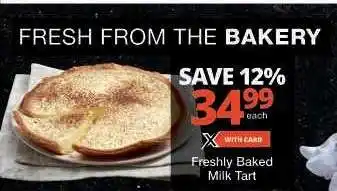 The price of Freshly Baked Milk Tart can be found at the top of the page, together with the dates during which the special is available. You can also check the price in the current Checkers catalogue or on the Checkers website. Promotional offers assure you of buying Checkers products at the lowest price.