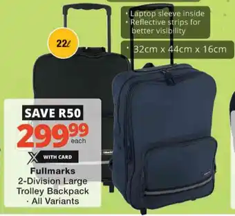 Now on special at Checkers: Fullmarks 2-Division Large Trolley Backpack ✅ Valid from 29-12 to 8-02.