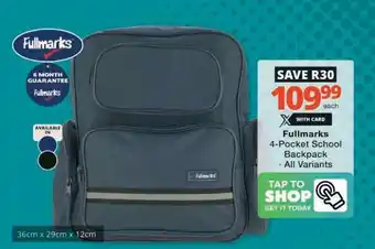 FULLMARKS 4-POCKET SCHOOL BACKPACK offers and online specials, directly from Checkers