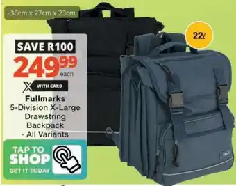 Now on special at Checkers: Fullmarks 5-Division X-Large Drawstring Backpack ✅ Valid from 29-12 to 8-02.