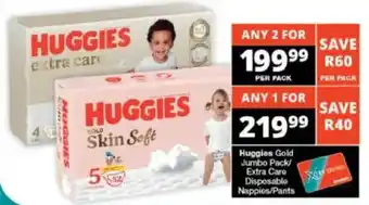 Huggies Gold Jumbo Pack Extra Care Disposable Nappies/ Pants promotion at Checkers