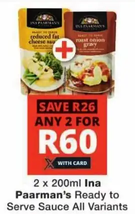 Ina Paarman's Ready to Serve Sauce All Variants Discount at Checkers