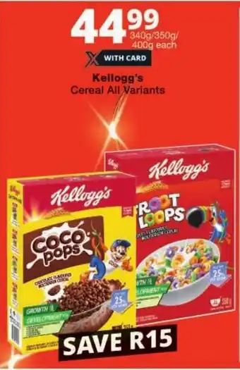 Now on special at Checkers: Kellogg's Cereal All Variants ✅ Valid from 8-12 to 28-12.
