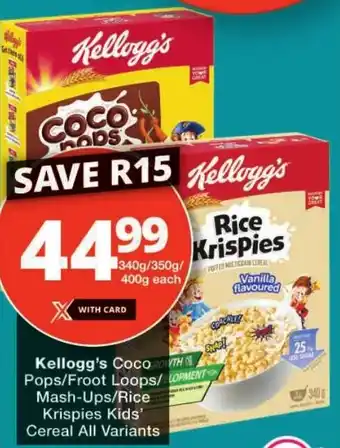 Kellogg's Coco Pops/ Froot Loops/ Mash-Ups/ Rice Krispies Kids' Cereal All Variants Offer at Checkers