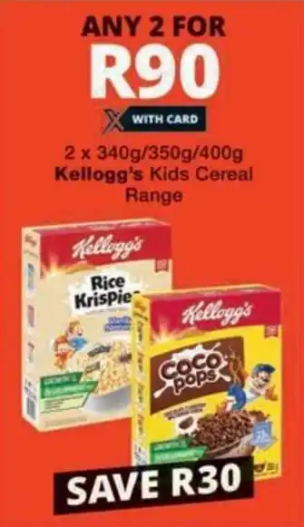 The Kellogg's Kids Cereal Range is available this week at Checkers as part of a special promotion. On this page, you’ll find everything about the promotional price, terms, and current specials. Browse related promotions and offers for Kellogg's Kids Cereal Range to make sure you don’t miss out.