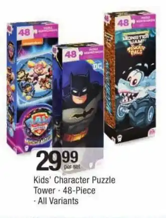 This special is available in various stores, view all products to get the cheapest Kids' Character Puzzle Tower. If you'd like to find out whether this product has a bigger discount in another store, check the category 'Grocery stores'. You may also find these specials interesting: Kids’ Character Puzzle Tower, Kids' Character Laptop & Kids Character Tees 2-7 Years-Each.