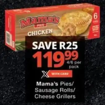 Mama's Pies/ Sausage Rolls/ Cheese Grillers offers and online specials, directly from Checkers