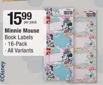 Minnie Mouse Book Labels Offer at Checkers