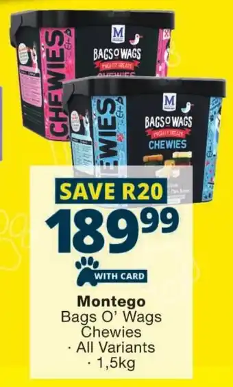 Now on special at Checkers: Montego Bags O' Wags Chewies ✅ Valid from 12-01 to 8-03.