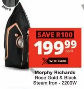 Now on special at Checkers: Morphy Richards Rose Gold & Black Steam Iron ✅ Valid from 19-01 to 8-02.