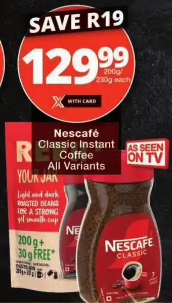 Nescafé Classic Instant Coffee All Variants offers and online specials, directly from Checkers