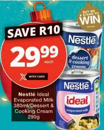 Nestlé Ideal Evaporated Milk/ Dessert & Cooking Cream offers and online specials, directly from Checkers