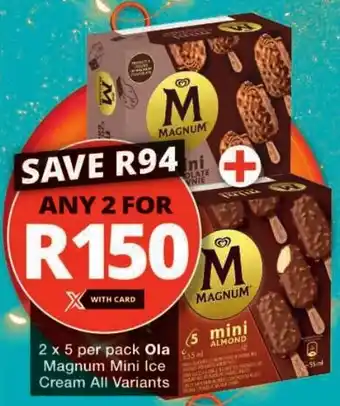 Now on special at Checkers: Ola Magnum Mini Ice Cream All Variants ✅ Valid from 8-12 to 28-12.