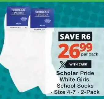 Scholar Pride White Girls' School Socks Offer at Checkers