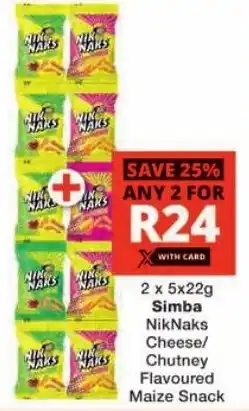 Simba NikNaks Cheese/ Chutney Flavoured Maize Snack promotion at Checkers