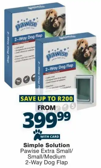 Now on special at Checkers: Simple Solution Pawise Extra Small/ Small/ Medium 2-Way Dog Flap ✅ Valid from 12-01 to 8-03.