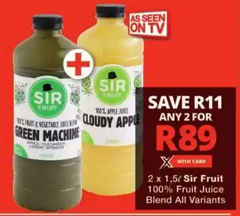 Sir Fruit 100% Fruit Juice Blend All Variants promotion at Checkers