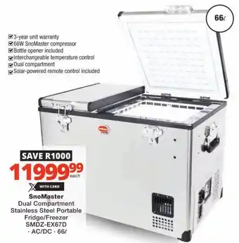 SnoMaster Dual Compartment Stainless Steel Portable Fridge/ Freezer promotion at Checkers