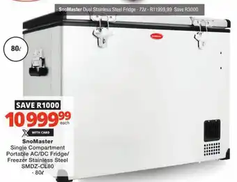 SnoMaster Single Compartment Portable AC/ DC Fridge/ Freezer Stainless Steel promotion at Checkers