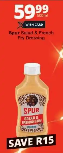 Checkers offers a wide collection of products, besides the Spur Salad & French Fry Dressing. Keep an eye on the weekly Checkers catalogue to find the best specials and promotions. Besides Spur Salad & French Fry Dressing, you can also find the following offers: Spur Salad & French Fry Dressing, Spur Dressing & Knorr salad dressing.