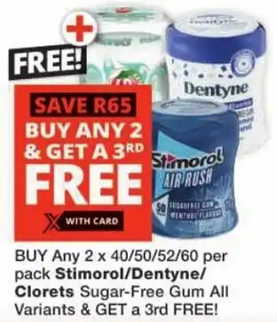 BUY Any 2 x 40/50/52/60 per pack Stimorol/ Dentyne/ Clorets Sugar-Free Gum All Variants & GET a 3rd FREE